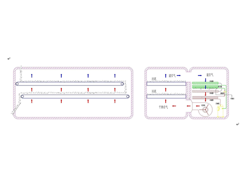 除濕干化機相當(dāng)于除濕熱泵及網(wǎng)帶輸送機(帶式干燥);