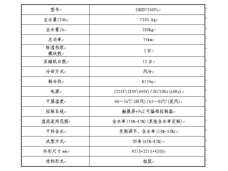 每天處理10噸污泥設(shè)備技術(shù)參數(shù)