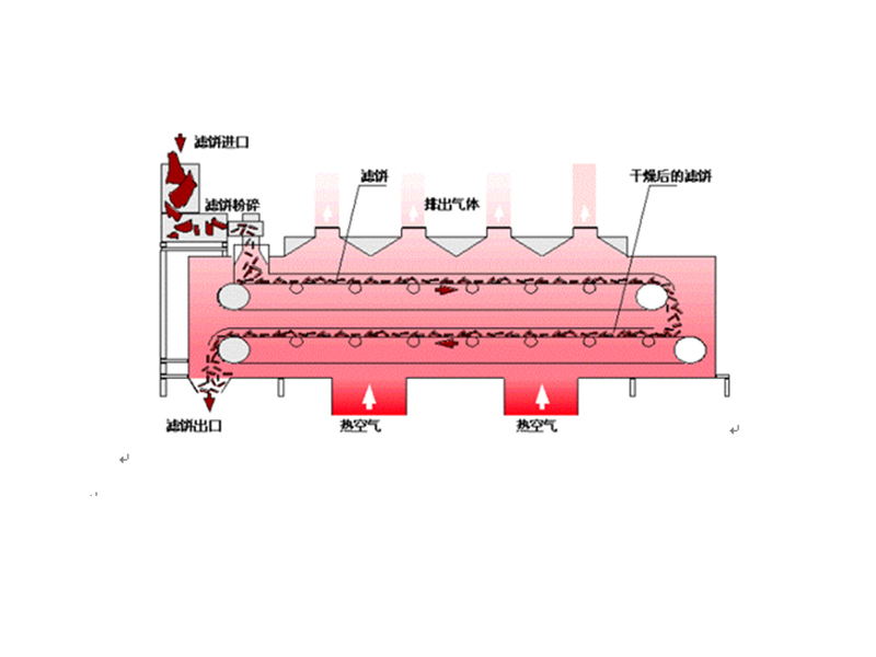 網(wǎng)帶式干燥透氣性好,可以增加熱風(fēng)與物料的接觸面積,換熱效率高;污泥靜態(tài)放置,減少粉塵量及延長網(wǎng)帶的使用壽命;