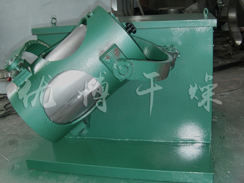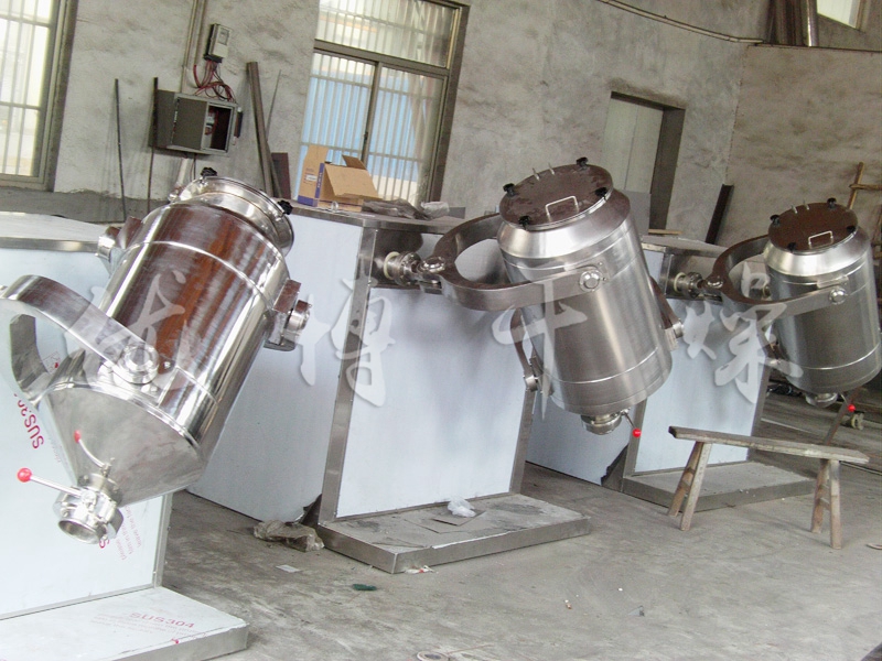 結構:該機由機座、傳動系統、電器控制系統、多向運動機構、混合筒等部件組成。與物料直接接觸的混合筒采用優質不銹鋼材料制造,桶體內外壁均經鏡面拋光。