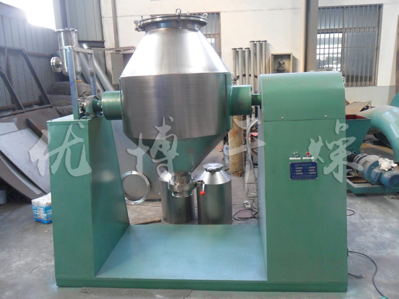 本機將粉末或粒狀物料通過真空輸送或人工加料到雙錐容器中,隨著容量的不斷旋轉,物料在容器中進行復雜的撞擊運動,達到均勻的混合。本機節約能源、操作方便、勞動強度低、工作效率高。
