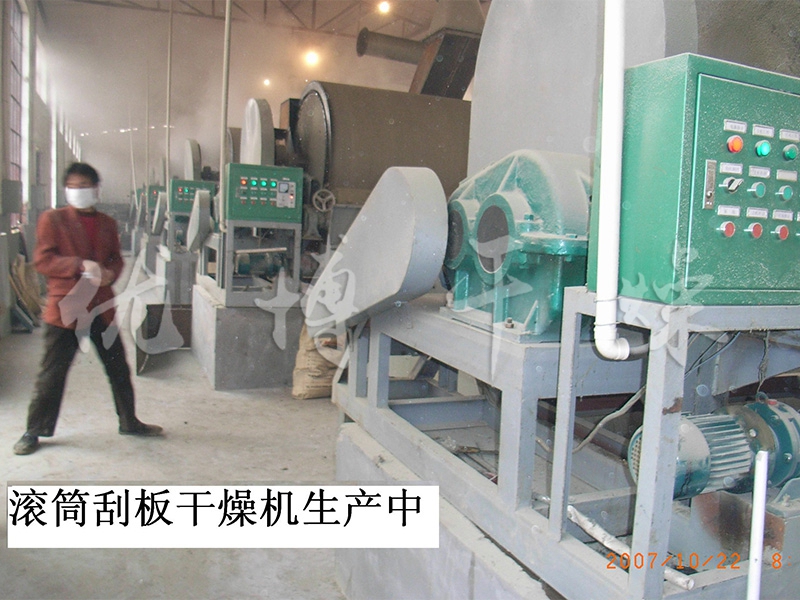 3、干燥時間短。物料的干燥周期一般只有10-300秒,在適合于熱敏性物料。若將滾筒干燥機設置在真空器中,則可在減壓條件下運行。